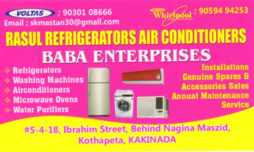 Rassul Refrigerators Air Conditioners (Baba Enterprises) is one of the best Air Conditioners & Refrigerators Sales & Services in Kakinada.