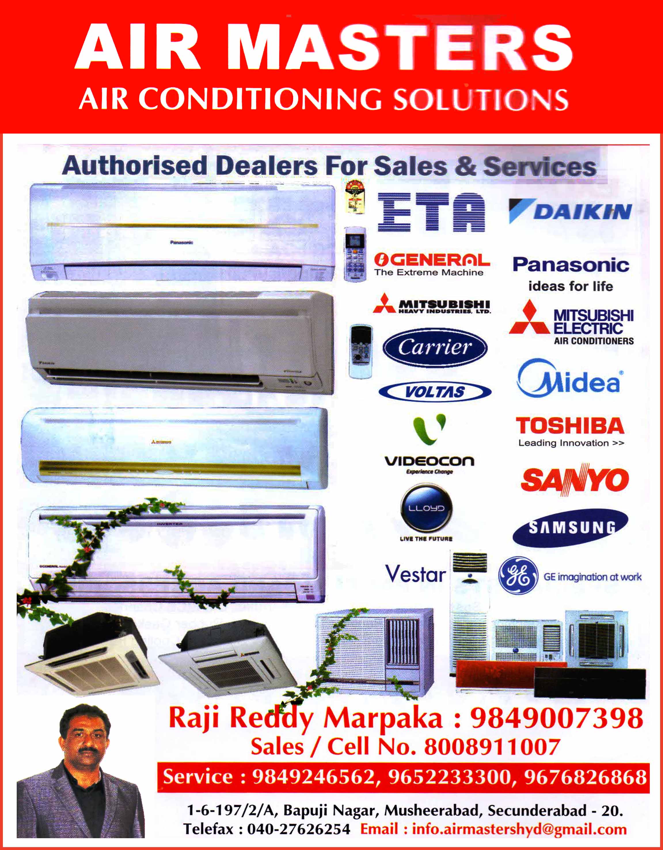 Air Masters Air Conditioning Solutions are the best service providers and authorised sales and service dealers for air conditioners in Secunderabad and Hyderabad.