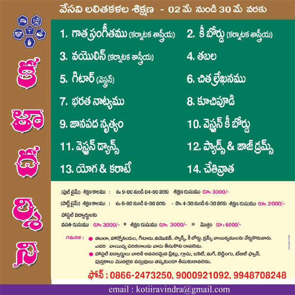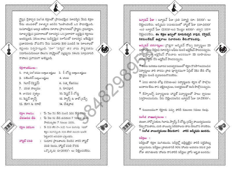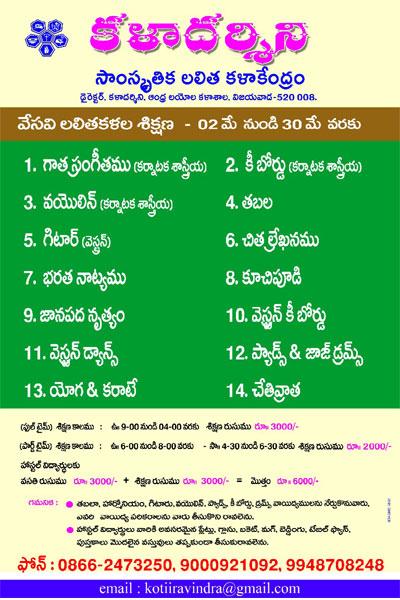 Kaladarshini Courses in Fine Arts is on of the best place to start learning music with various courses in Vijayawada at Andhra Loyolo College.