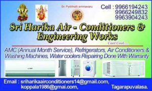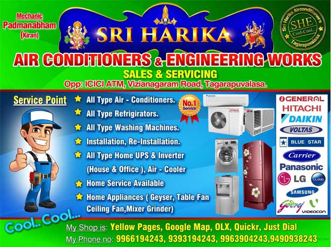 Sri Harika Air – Conditioners & Engineering Works is one of the best Air Conditioning & Refrigeration Repairs & Services & Spares in Tagarapuvalasa, Vizianagaram, Anakapalle.