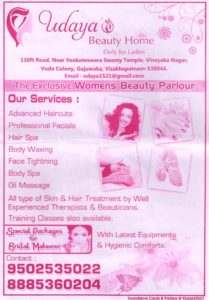 Udaya’s Beauty Home is one of the best Womens Beauty Parlours in Gajuwaka, Visakhapatnam.