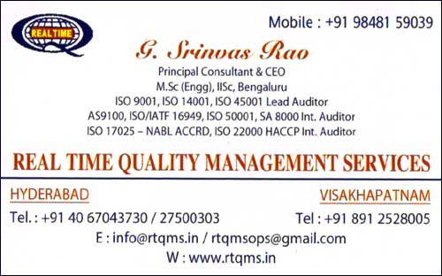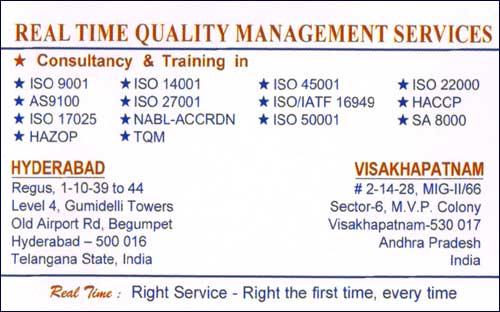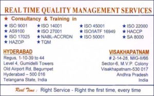 Real Time Quality Management Services is one of the best Consultants ISO Certifications in Visakhapatnam / Hyderabad.