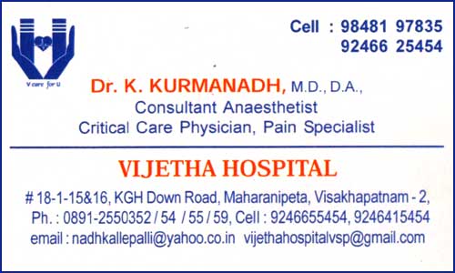 consultant anaesthetists doctors in visakhapatnam / vizag / maharanipeta / pedawaltair