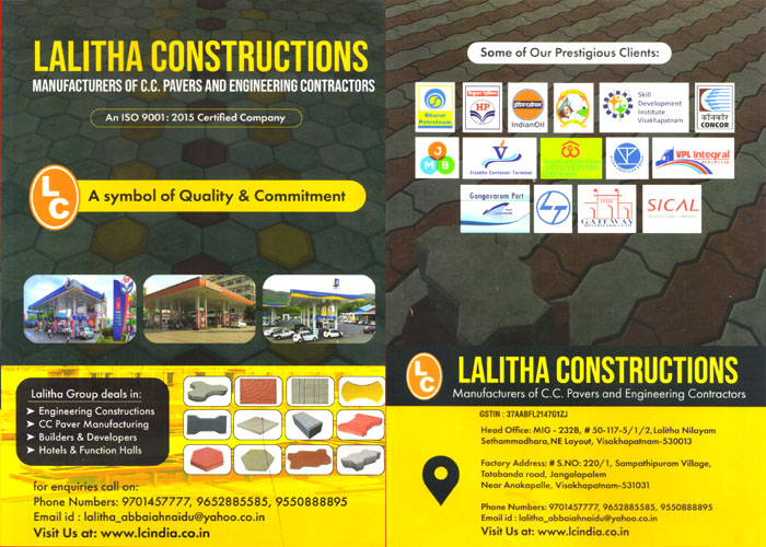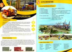 Lalitha Constructions is a premier name in manufacturing high-quality pavers blocks and flyash bricks. As a trusted contractor and developer, we specialize in providing superior building materials for various construction projects. Our commitment to excellence and durability ensures that every product meets the highest standards, making us a leading choice for all your building needs. We proudly serve the Visakhapatnam area and beyond, offering reliable solutions for both residential and commercial developments.