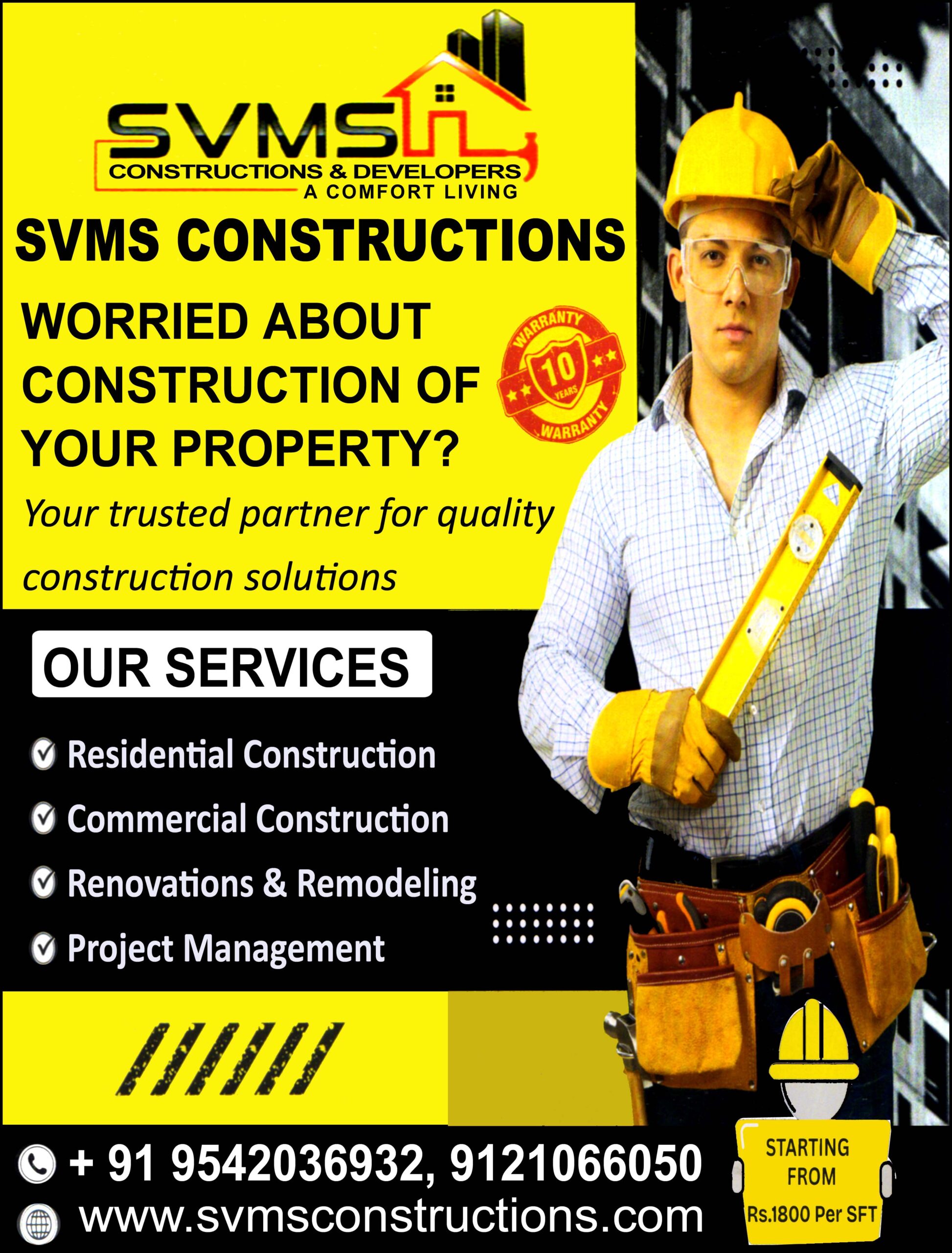 SVMS Constructions and Developers is one of the best real estate and construction companies in Visakhapatnam. We specialize in residential and commercial property development, offering quality construction, reliable project execution, and customer-focused real estate solutions across the city