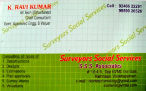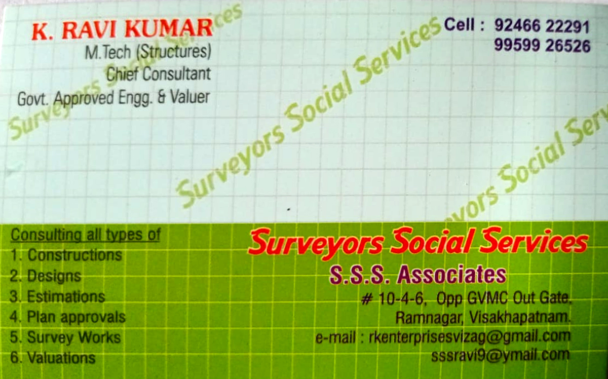 SS Associated is one of the best Govt. Approved Engineers, Valuers & Surveyors in Visakhapatnam, offering trusted technical and consulting services for residential, commercial, and industrial projects. We provide accurate assessments, certified valuations, and complete engineering solutions.